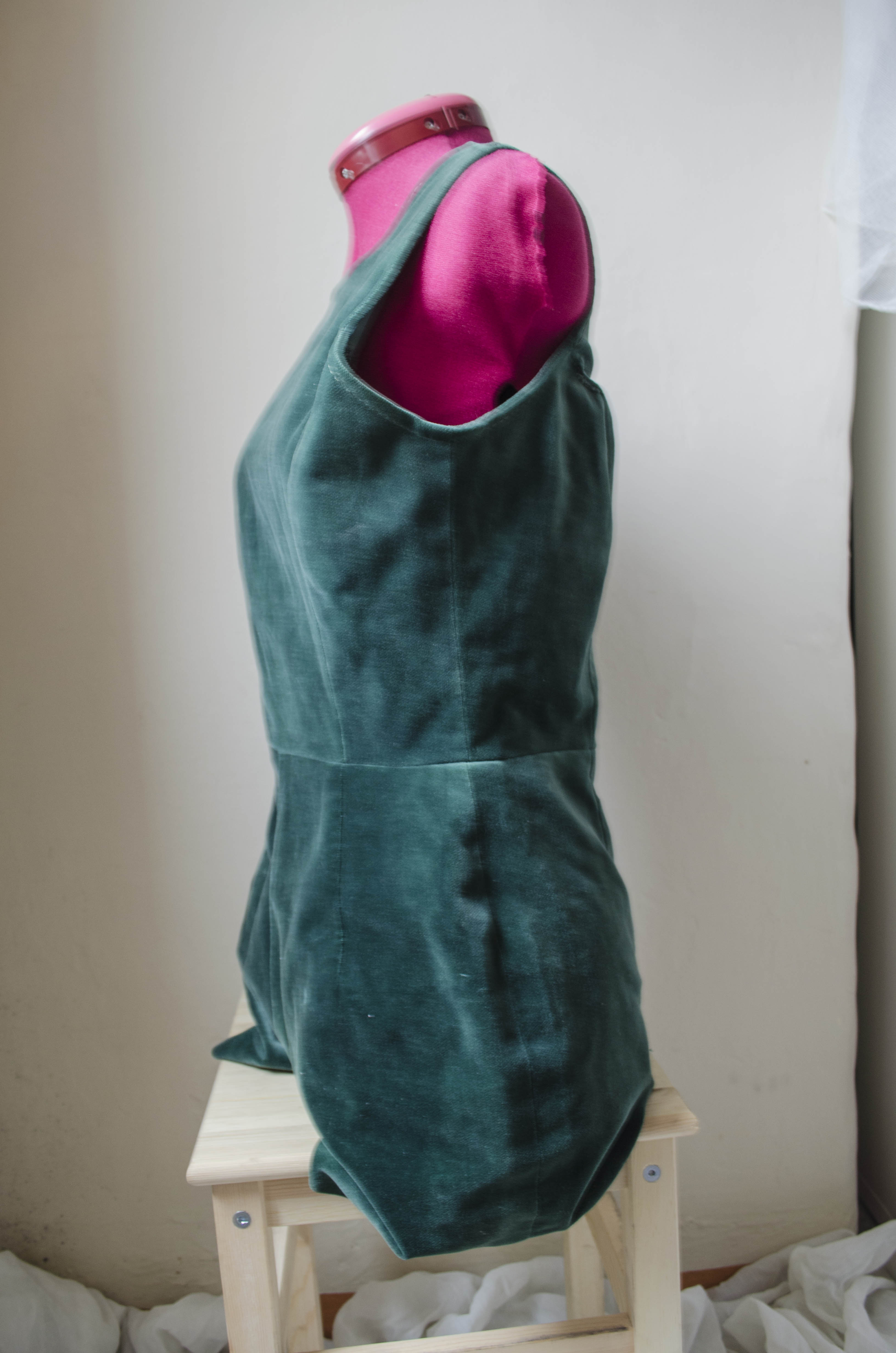 Lovely Vintage overalls in green velvet, from Italian brand "Looks" 1960. It have a zip in the back.
