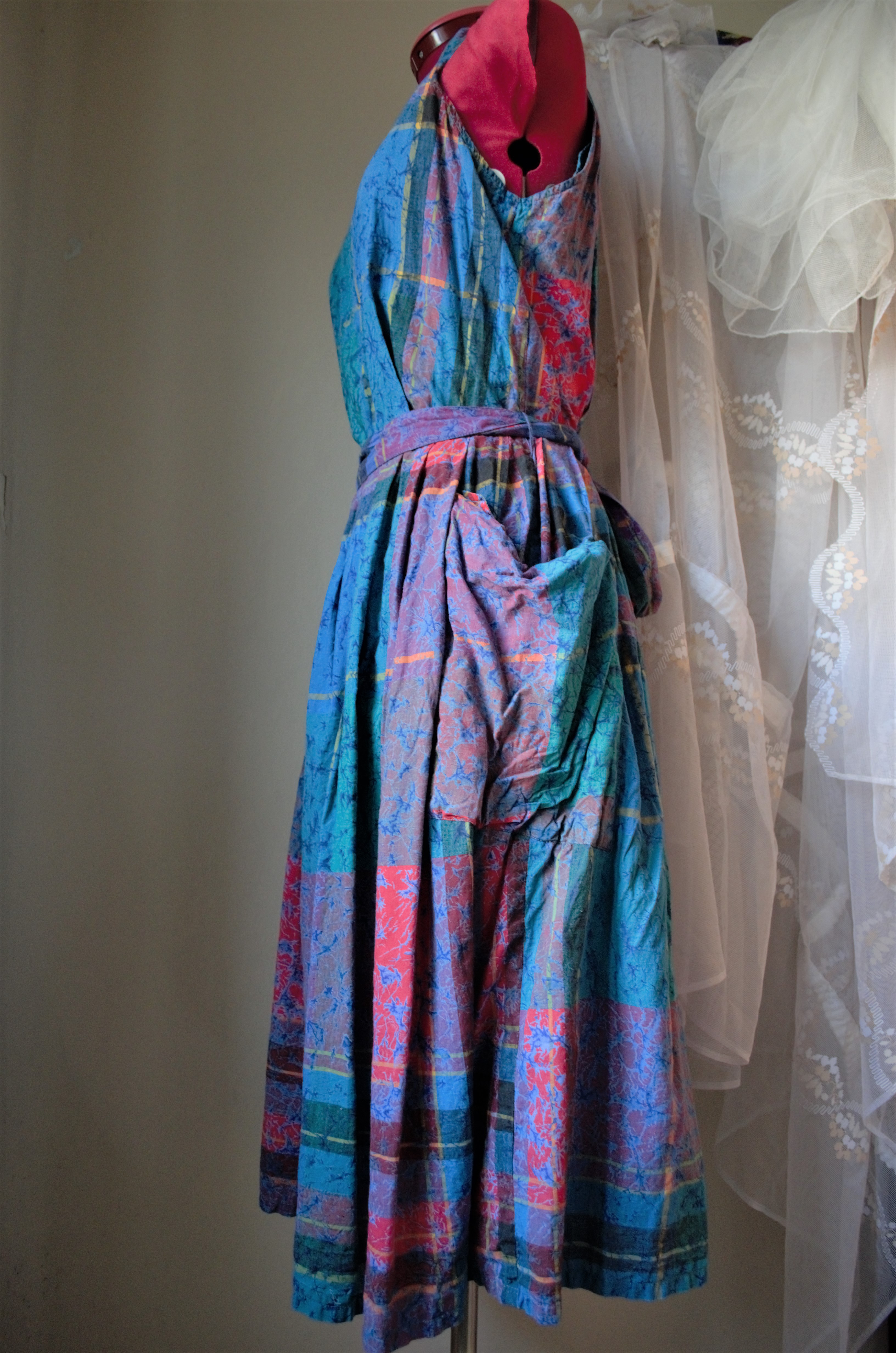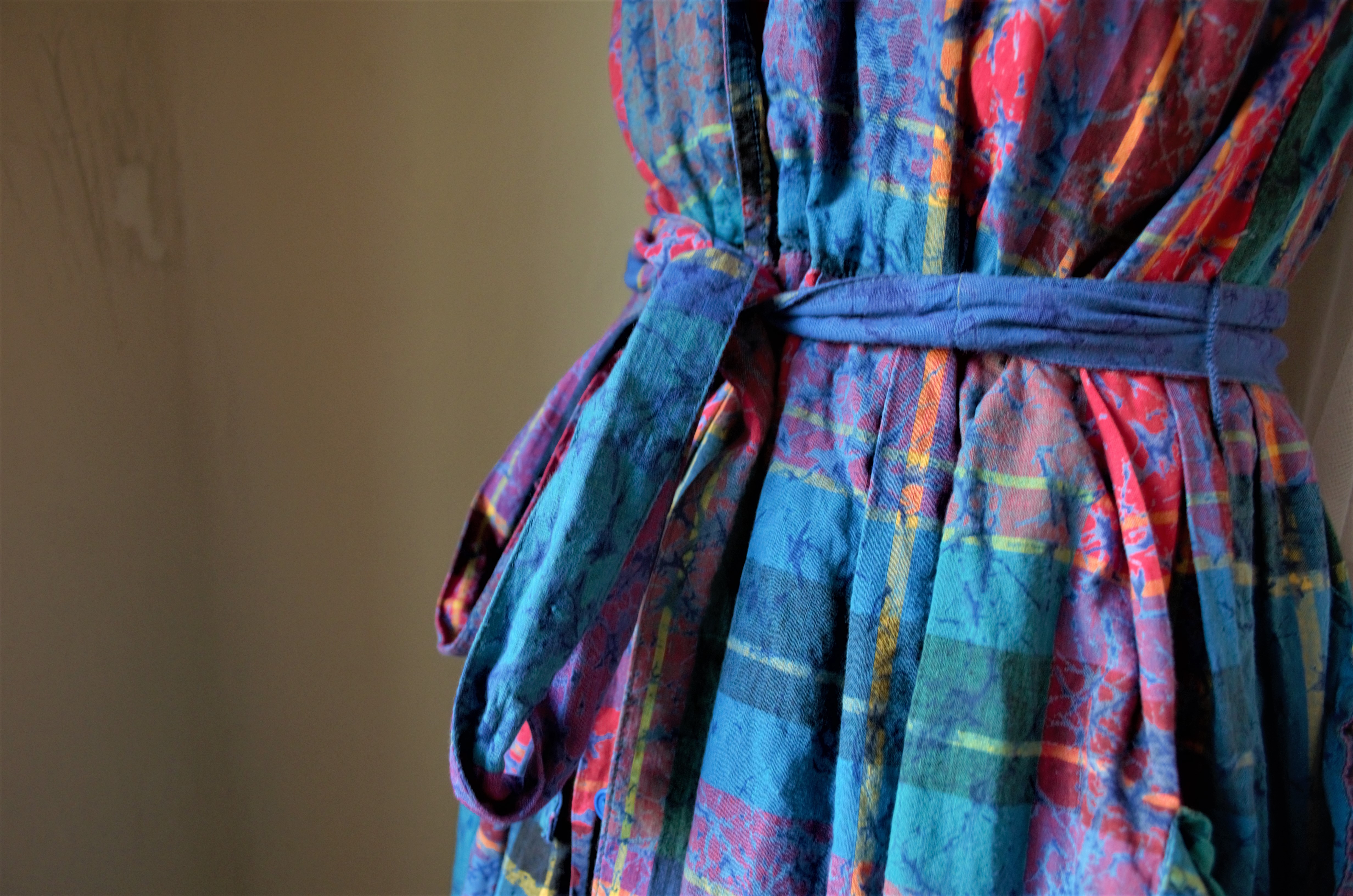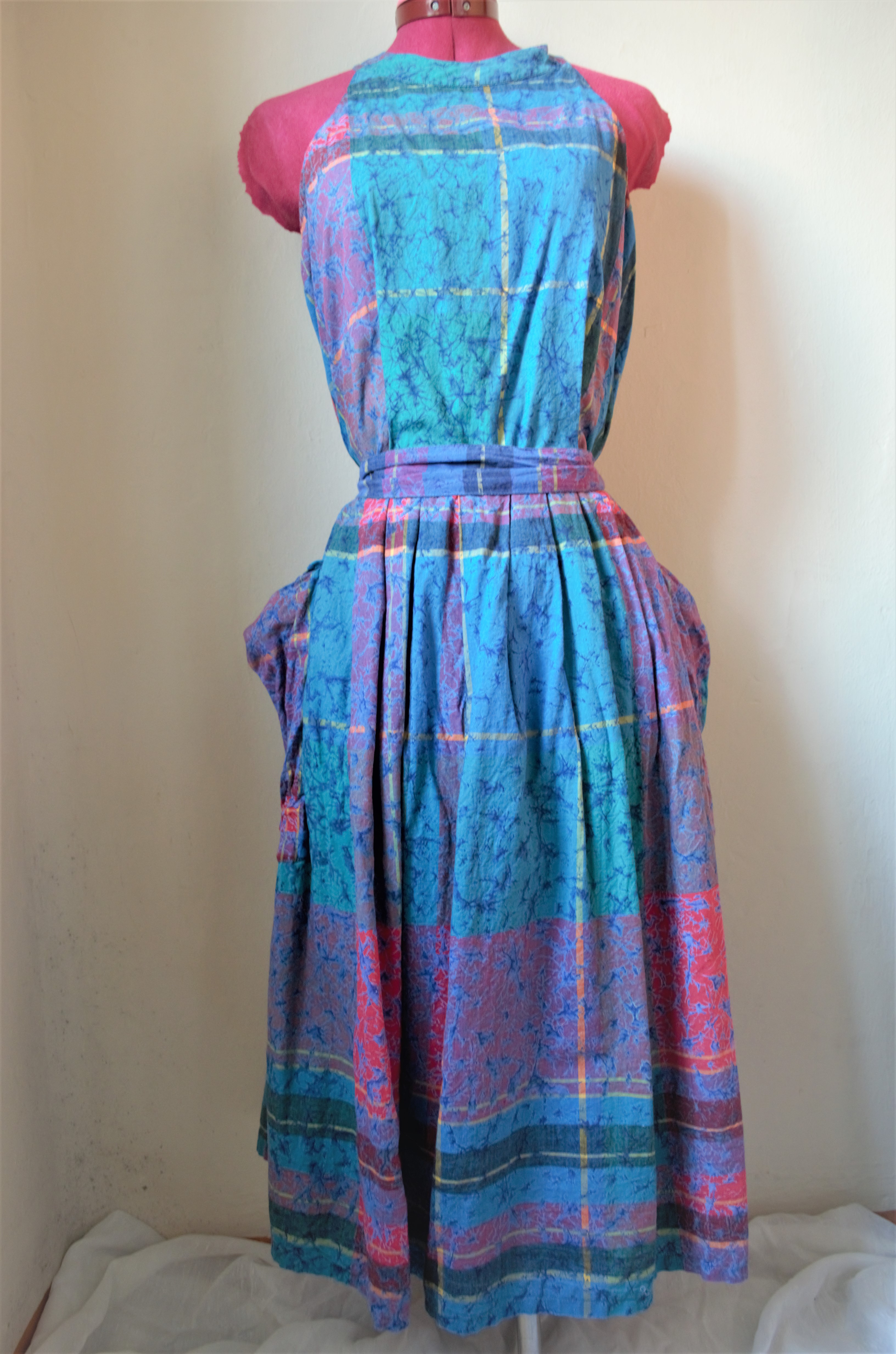 Lovely mori/country dress, with squared pattern and high waist, detachable ribbon as closure in waist and back closure with buttons.